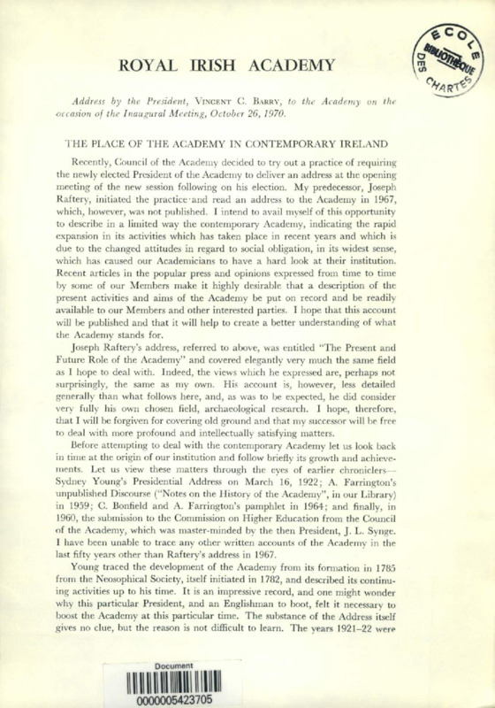 The place of the Academy in contemporary Ireland