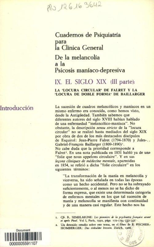 De la Melancolia a la psicosis maniaco-depresiva
