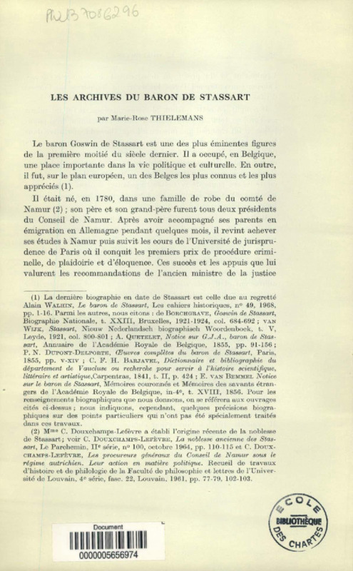 Les archives du Baron de Stassart