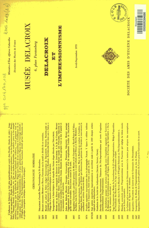 Delacroix et l'impressionnisme : [exposition], Paris, Musée Delacroix, avril-septembre 1970