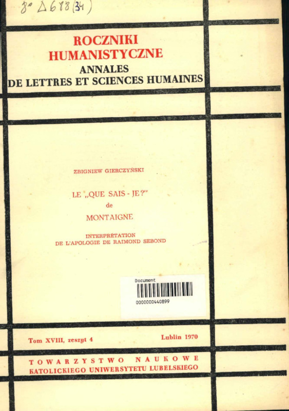 Le " Que sais-je" de Montaigne : interprétation de l'apologie de Raimon Sebond