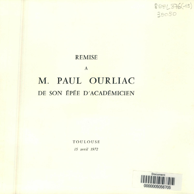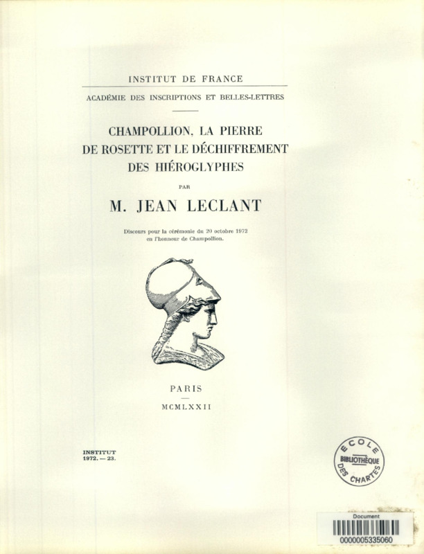 Champollion, la pierre de rosette et le déchiffrement des hiéroglyphes : discours pour la cérémonie du 20 octobre 1972 en l'honneur de Champollion