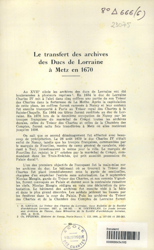 Le transfert des archives des ducs de Lorraine à Metz en 1670