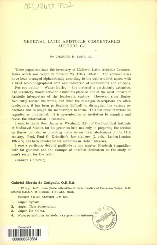 Medieval Latin Aristotle Commentaries : Authors G-I