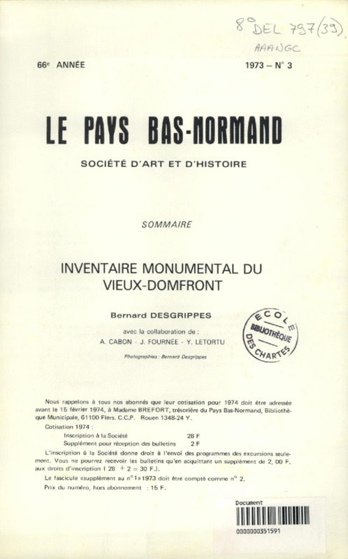 Inventaire monumental du Vieux-Domfront