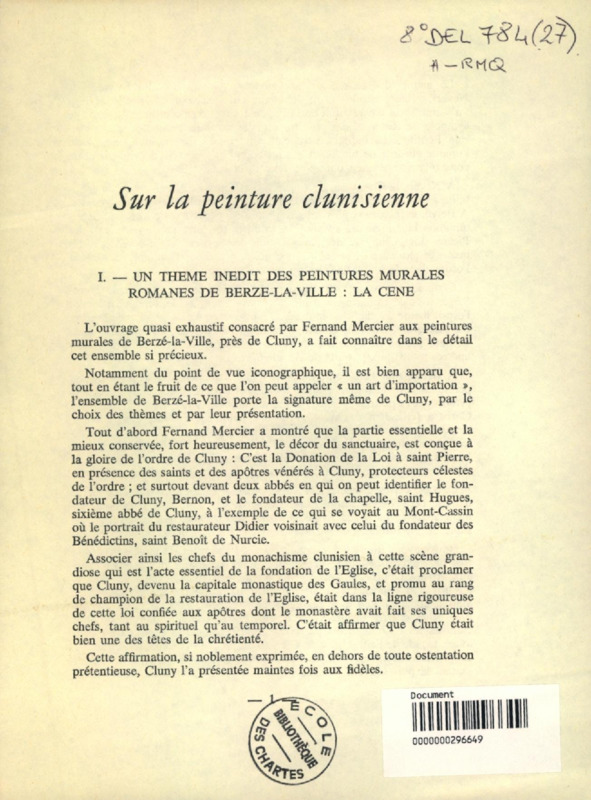 Sur la peinture clunisienne