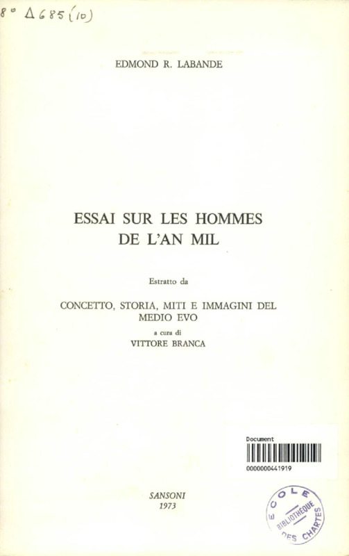 Essai sur les hommes de l'an mil