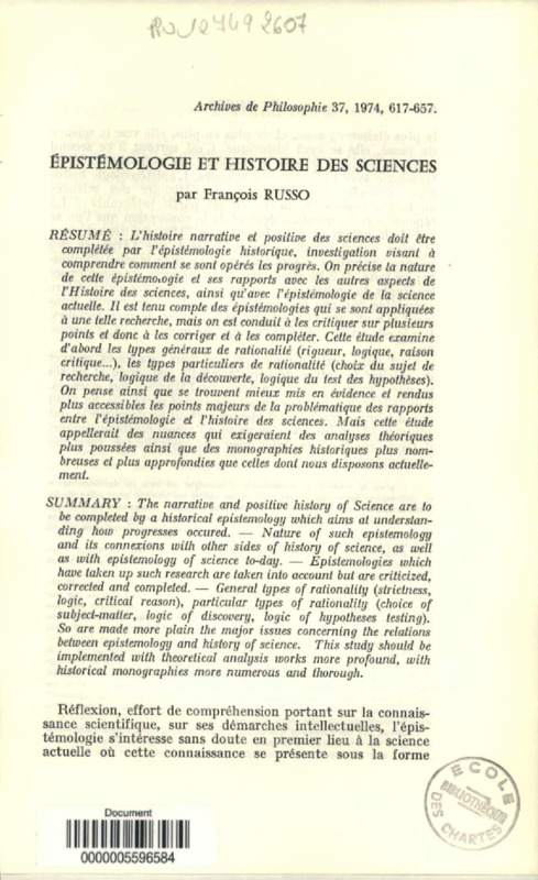 Epistémologie et Histoire des sciences