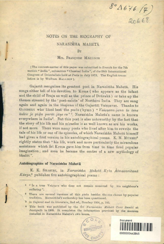 Notes on the biography of Narasimha Maheta