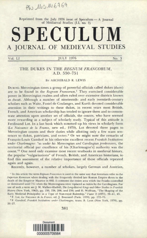 The Dukes in the Regnum Francorum, A.D.550-751