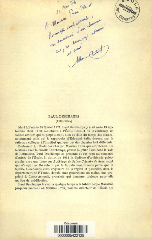 Paul Deschamps : 1888-1974 chronique