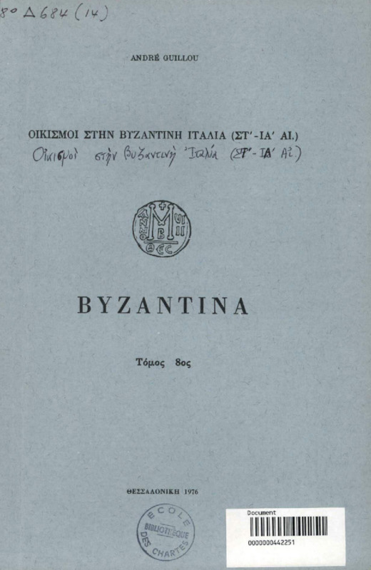 [Oikismoi stin byzantini italia (st - ia'ai)]