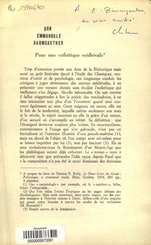 Pour une esthétique médiévale