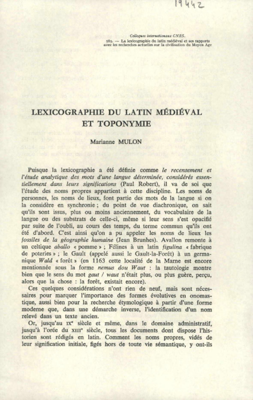 Lexicographie du latin médiéval et toponymie