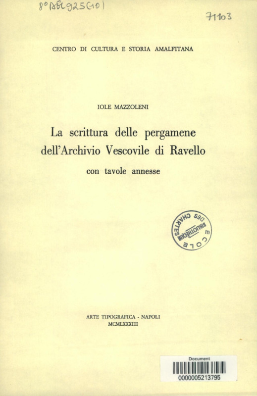 La scrittura delle pergamene dall'Archivio vescovile di Ravello : con tavole annesse