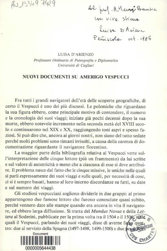Nuovie documenti su Amerigo Vespucci