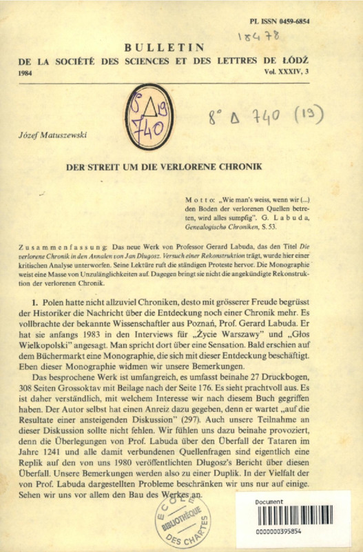 Der Streit um die verlorene Chronik