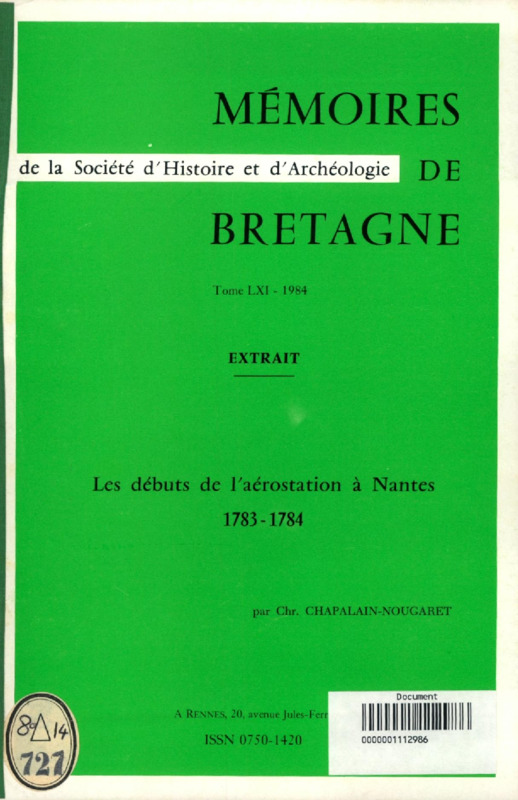Les débuts de l'aérostation à Nantes 1783-1784