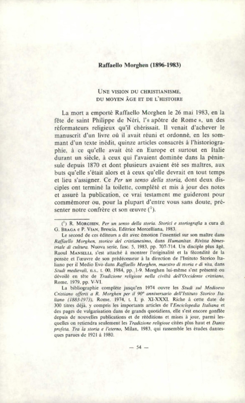 Raffaello Morghen, 1896-1983 : Une vision du christianisme du Moyen âge et de l'histoire