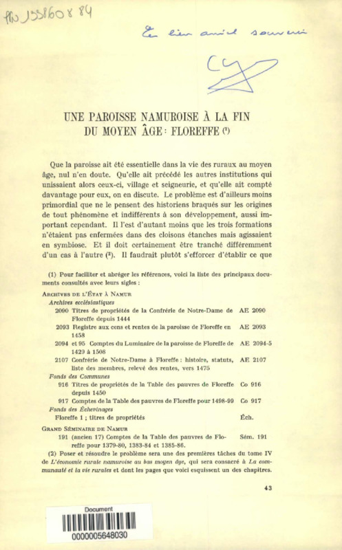 Une paroisse namuroise à la fin du Moyen âge : Floreffe