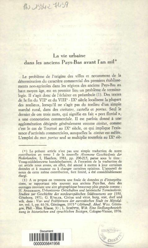 La vie urbaine dans les anciens Pays-Bas avant l'an mil