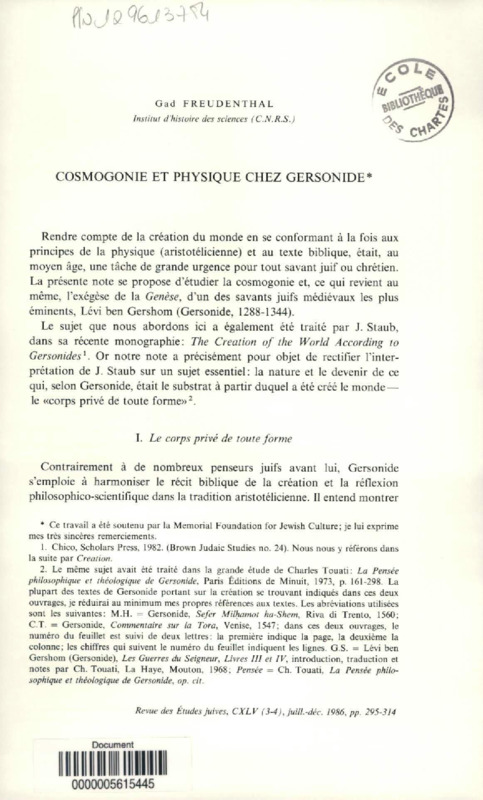 Cosmogonie et physique chez Gersonide