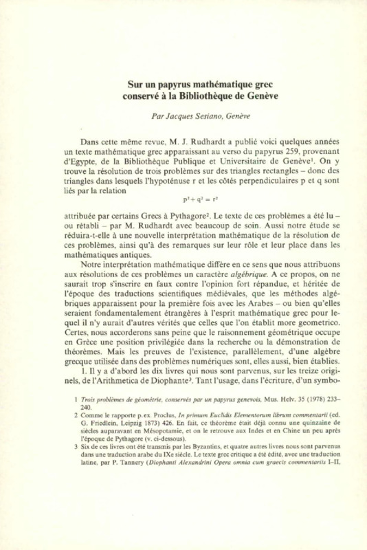 Sur un papyrus mathématique grec conservé à la Bibliothèque de Genève