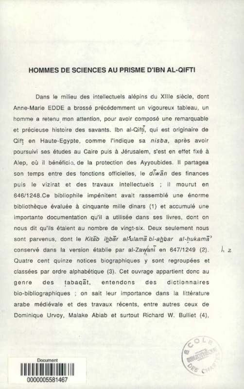 Hommes de sciences au prisme d'Ibn Al-Qifti