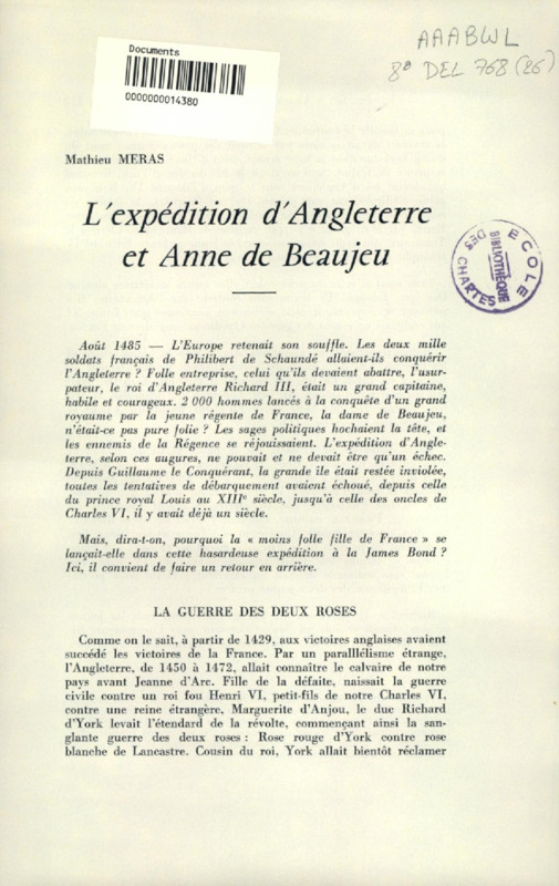 L'Expédition d'Angleterre et Anne de Beaujeu