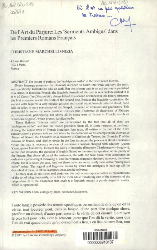 De l'Art du Parjure : les "Serments Ambigus" dans les Premiers Romans Français