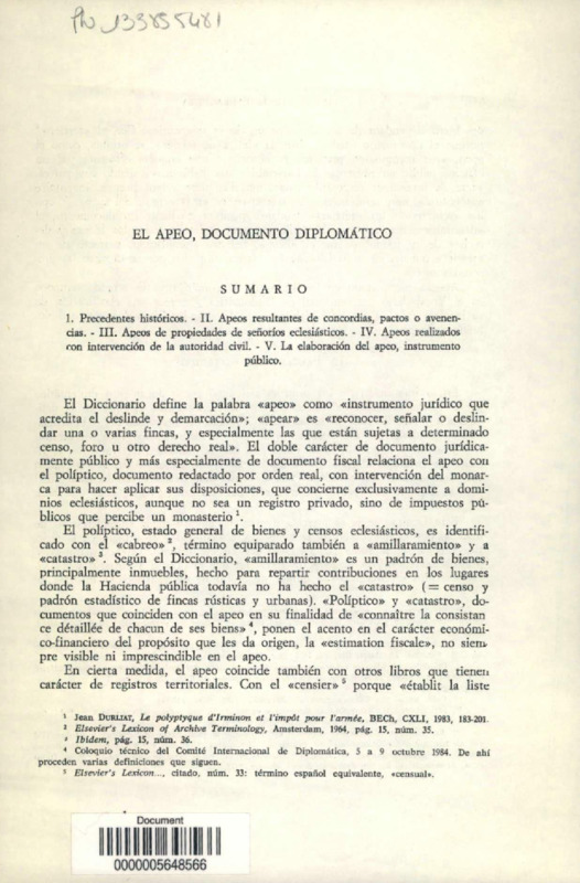 El Apeo, documento diplomatico