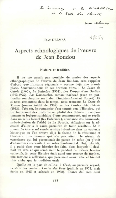 Aspects ethnologiques de l'oeuvre de Jean Boudou