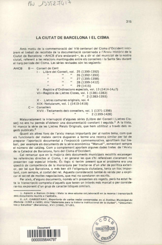 La ciutat de Barcelona i el cisma