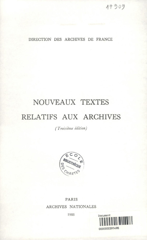 Nouveaux textes relatifs aux archives