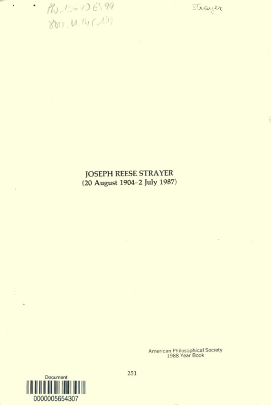 Joseph Reese Strayer, 20 August 1904-2 July 1987