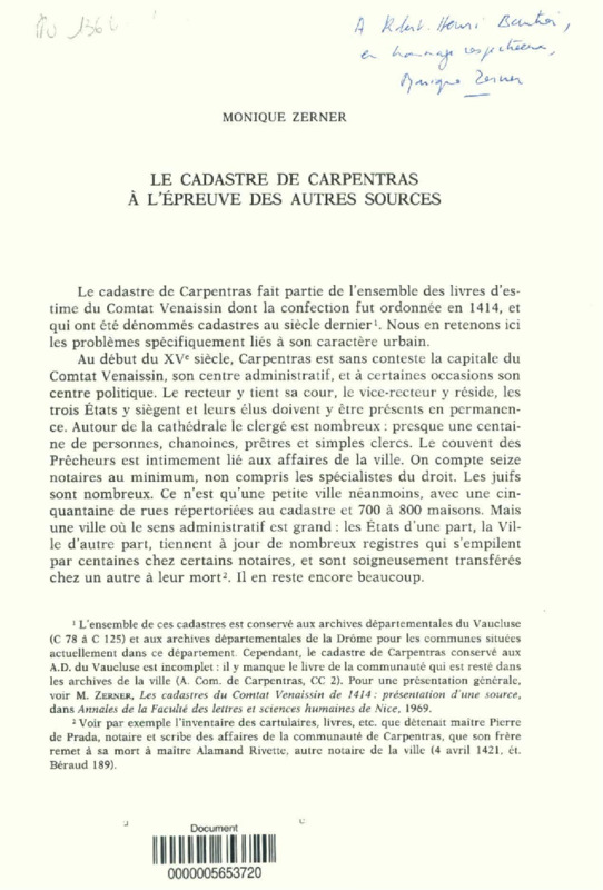 Le cadastre de Carpentras à l'épreuve des autres sources