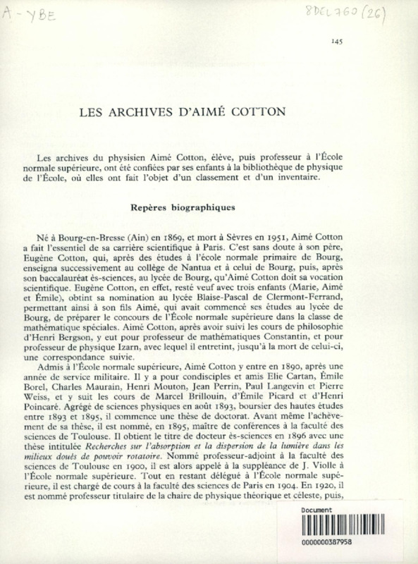 Les Archives d'Aimé Cotton