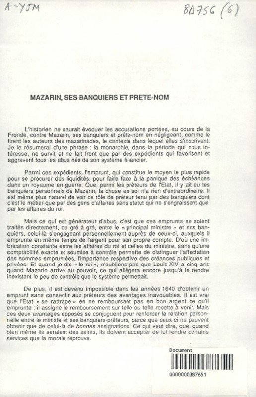 Mazarin, ses banquiers et prête-nom