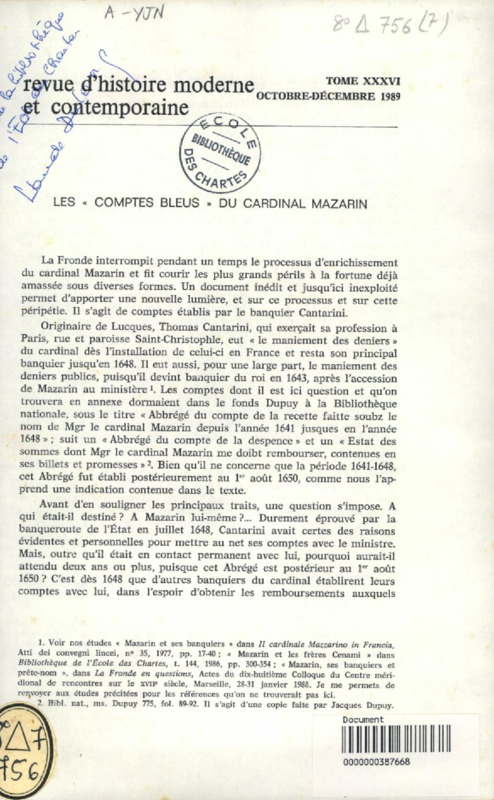 Les "Comptes bleus" du Cardinal Mazarin