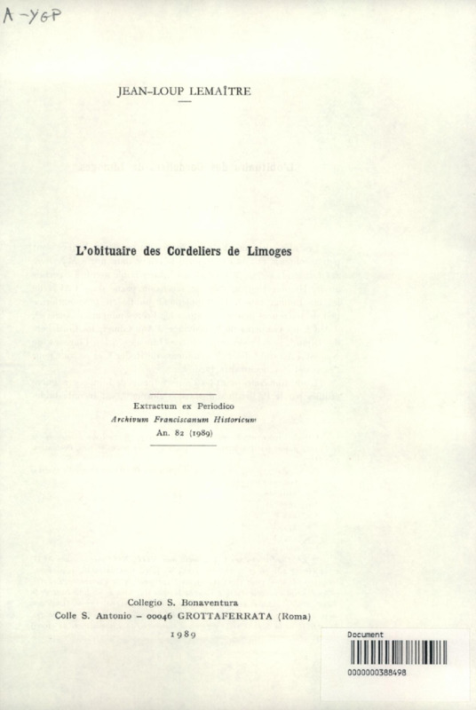 L'obituaire des Cordeliers de Limoges
