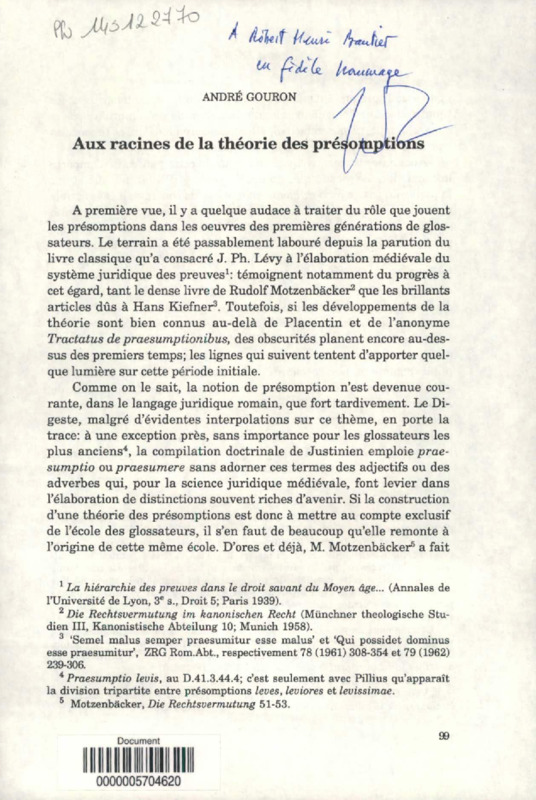 Aux racines de la théorie des présomptions