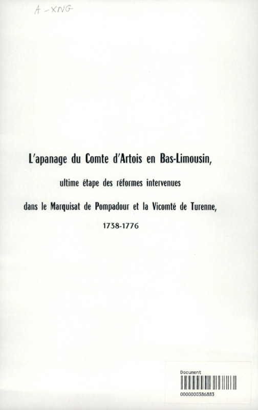 L'apanage du Comte d'Artois en Bas-Limousin : ultime étape des réformes intervenues dans le Marquisat de Pompadour et la Vicomté de Turenne, 1738-1776