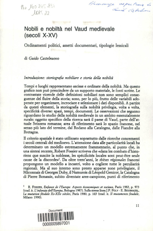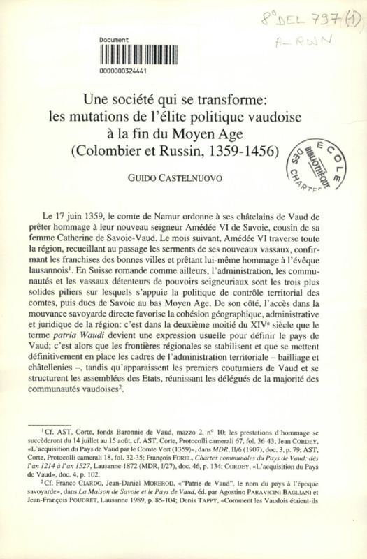 Nobili e nobilta nel Vaud medievale, secoli X-XV