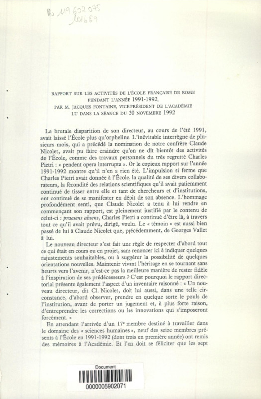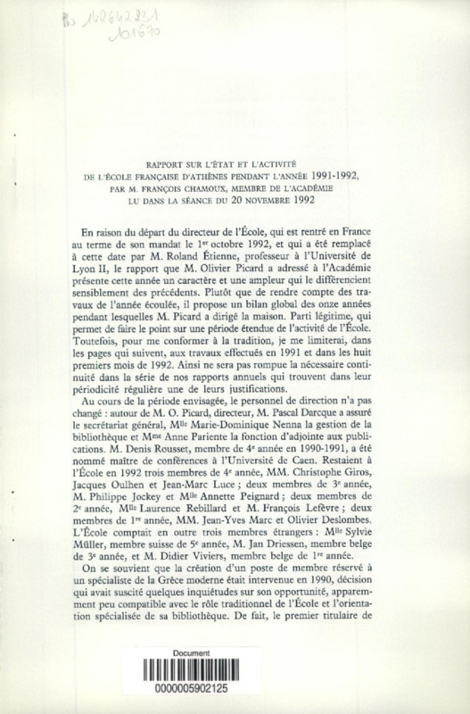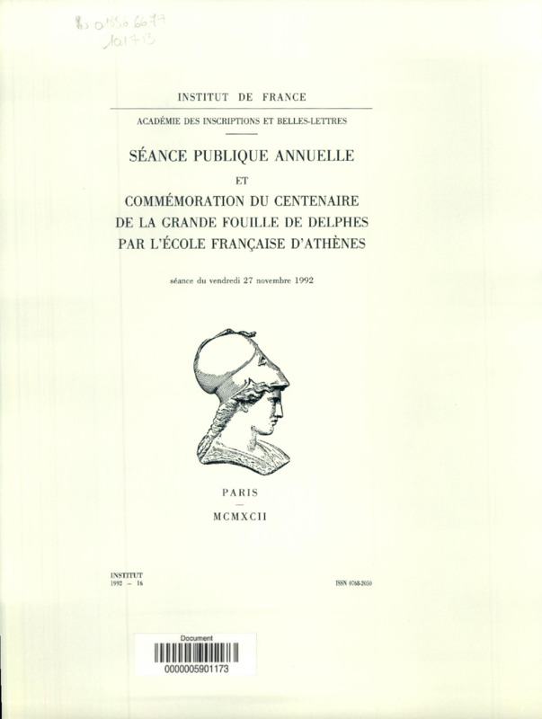 Séance publique annuelle et commémoration du centenaire de la grande fouille de Delphes par l'Ecole française d'Athènes : séance du vendredi 27 novembre 1992