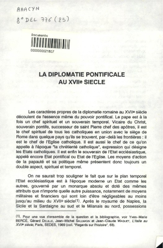 La diplomatie pontificale au XVIIe siècle
