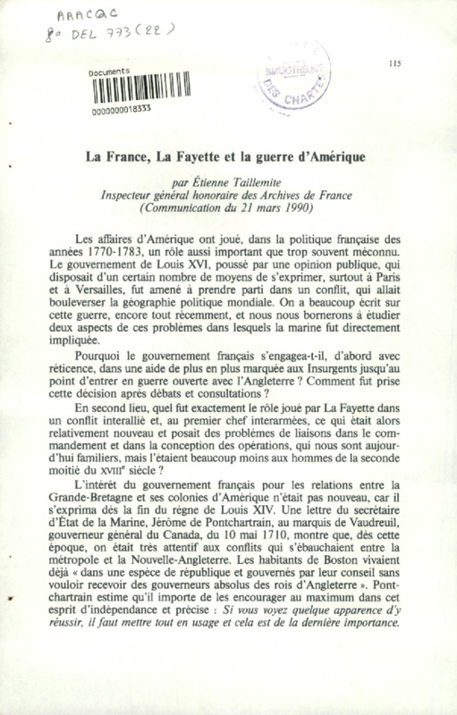 La France, La Fayette et la guerre d'Amérique