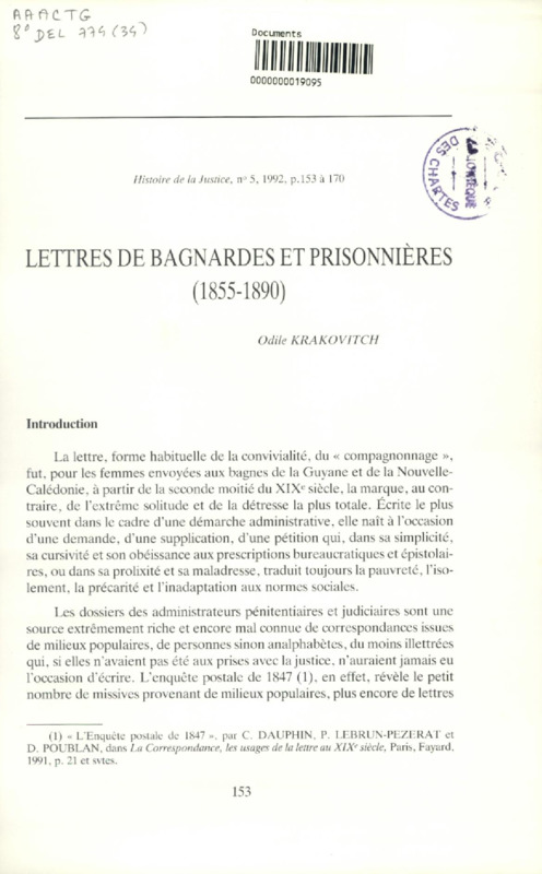 Lettres de bagnardes et prisonnières (1855-1890)