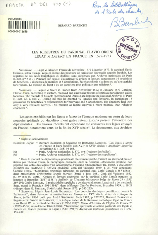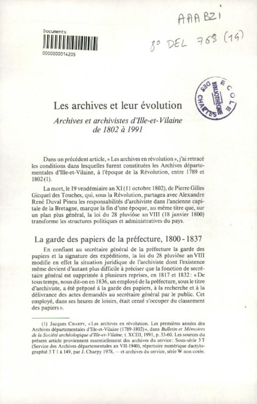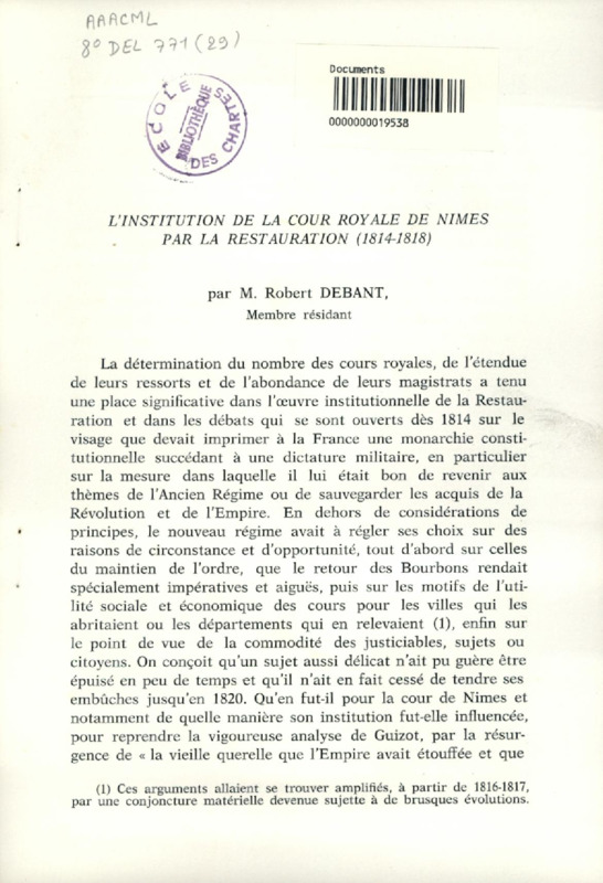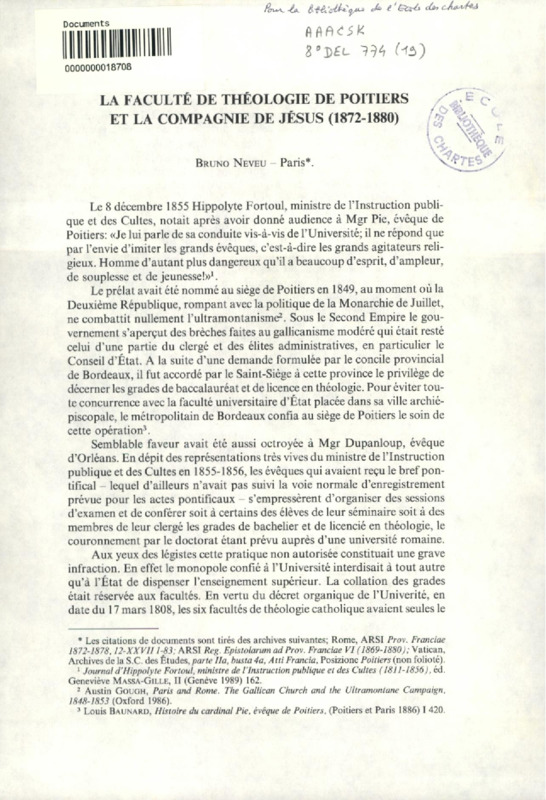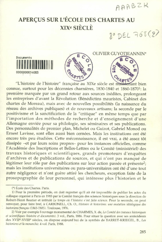 Aperçus sur l'Ecole des chartes au XIXe siècle