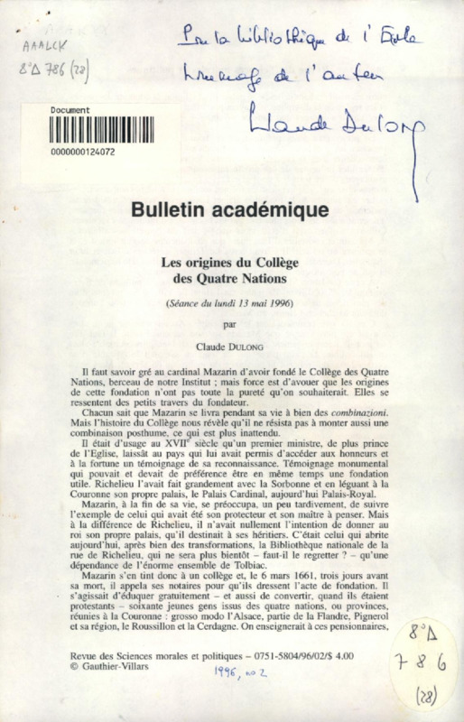 Les Origines du Collège des Quatre Nations