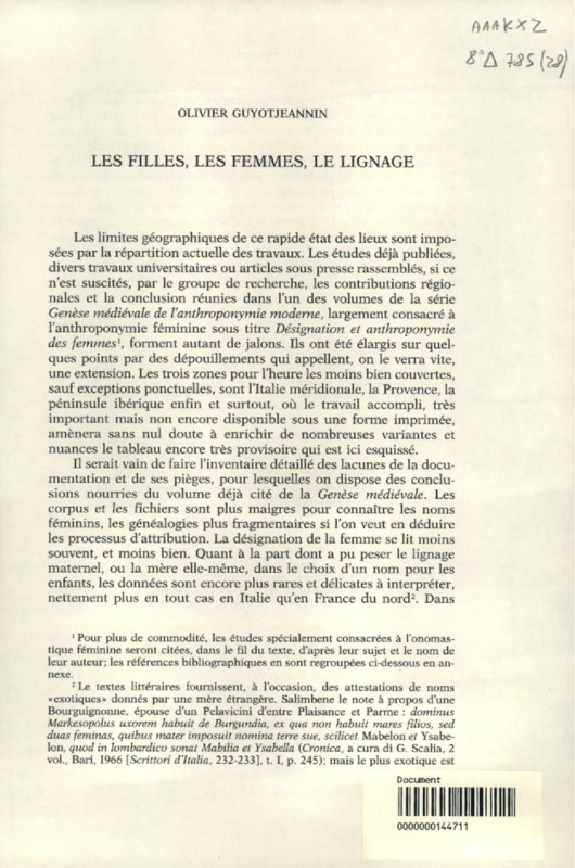 Les Filles, les femmes, le lignage